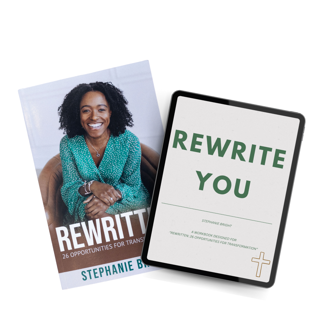 It's a package deal! Grab the book and the study guide! This package is perfect for the "mom" of the girl group, or the Bible study/women's group leader! "REWRITE YOU" is a study that goes hand-in-hand with the book, "REWRITTEN: 26 Opportunities for Transformation", written by Stephanie Bright. This study will ask you the hard questions, give you space to process, and encourage you as you rewrite your story with God. Grab this package and prepare for a beautiful transformation through Christ!