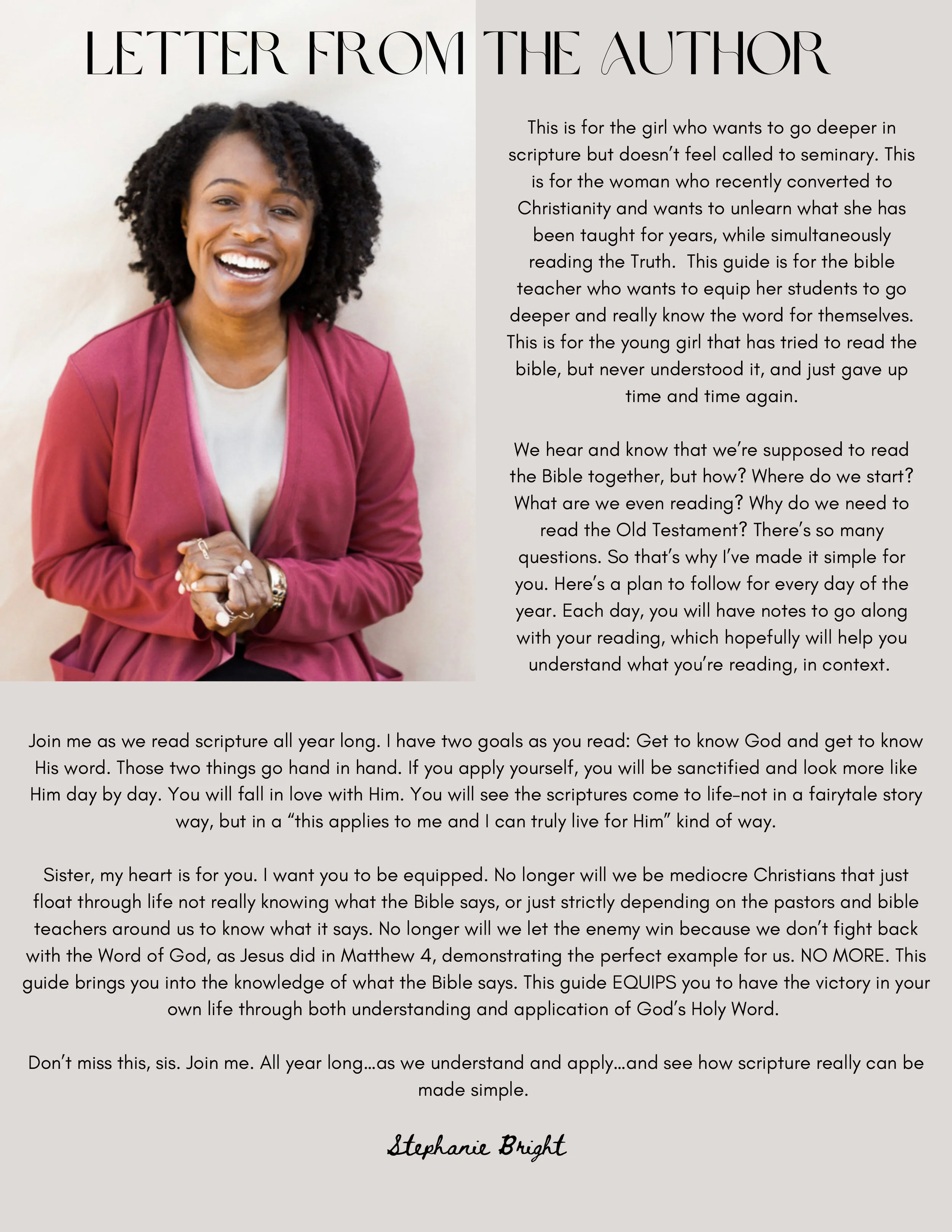 Purchase your copy of my new eBook: Scripture Made Simple! This is a great resource to use to study through the ENTIRE Bible all year-long! This book is full of notes, challenges, study verses, and so much more. Once downloaded, You will be able to read this electronic book on your computer, tablet, or smartphone.